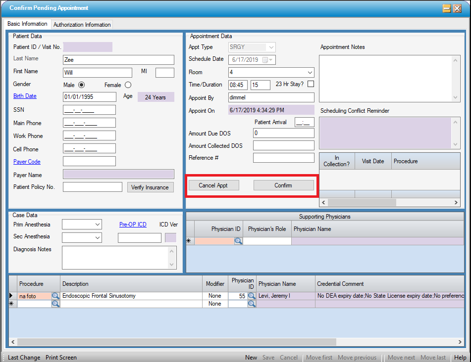 NOTE: The Appointment Sheet must be open prior to opening pending appointments and attempting to Confirm or Cancel a pending appointment.