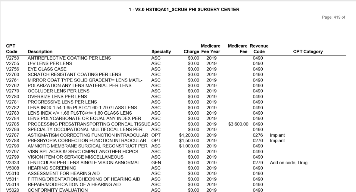 Track all CPT codes entered into HST Practice Management. Reads directly off the CPT Code table under the Administration menu.