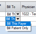 If charges have been entered which do not need to go on the claim (such as upgraded IOLs or cosmetic procedures), select Bill Patient Only in the Service Lines Bill To column. This will not generate a statement to the patient, but it will prevent the line item selected from appearing on the claim.