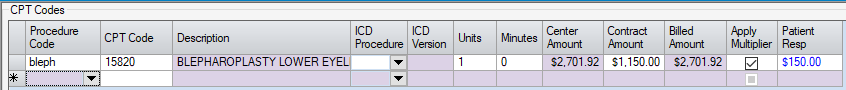 - Apply Multiplier will be checked by default but can be unchecked for CPT codes for which multiple procedure discounts do not apply.