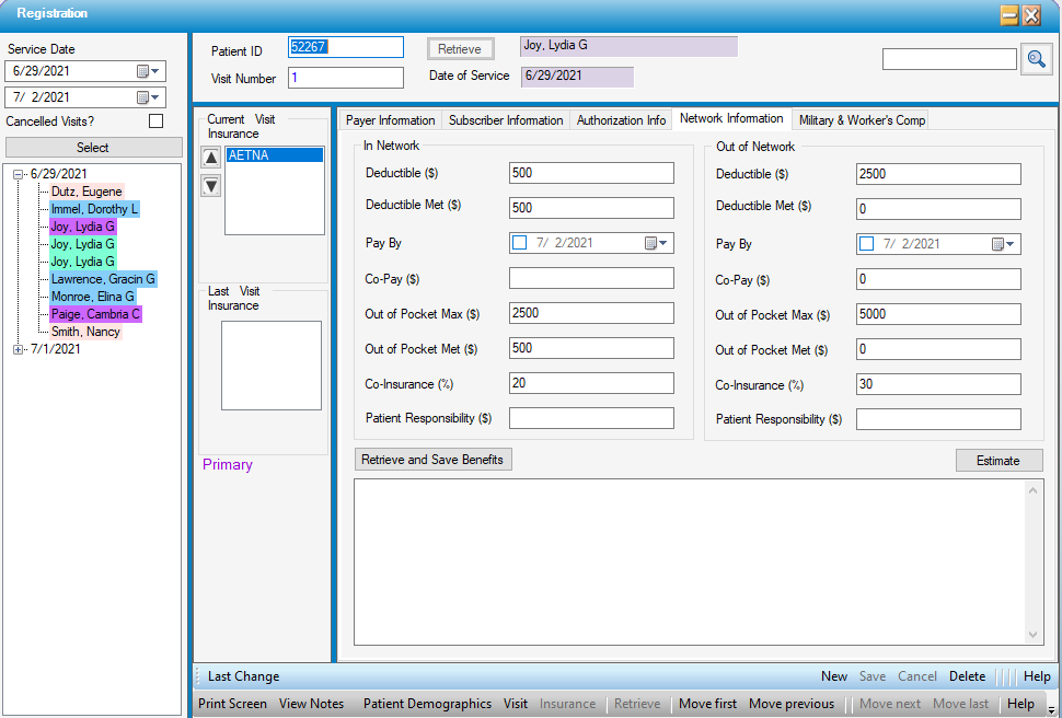 • On the Network Information tab, enter the appropriate deductible, co-pay, co-insurance and out of pocket benefits or - if Real Time Eligibility was utilized - select the option to populate automatically.