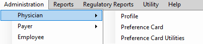 There are two menu options for the creation and maintenance of Physician Preference Cards: