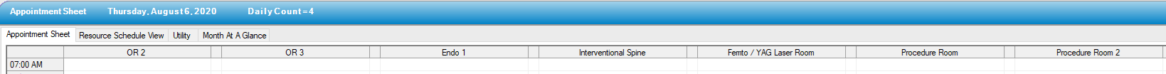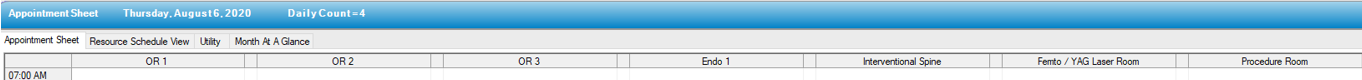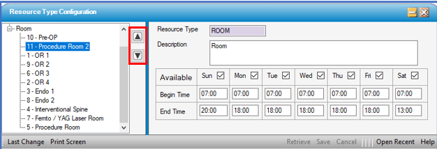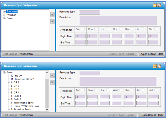 Note: Double clicking on any particular room, physician, or equipment, will open Resource Configuration.