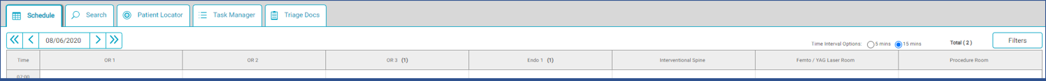 for down The begin and end time of each room, physician, and equipment can also be edited.