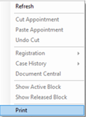 · Print the Appointment Sheet: User can print the Appointment Sheet by right clicking anywhere on the sheet and selecting Print.